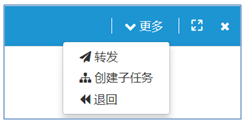 點(diǎn)擊“更多”系統(tǒng)會(huì)根據(jù)任務(wù)的狀態(tài)及操作者的角色下拉列出一些任務(wù)的輔助功能,如下圖所示,具體功能會(huì)在后面的章節(jié)中介紹。