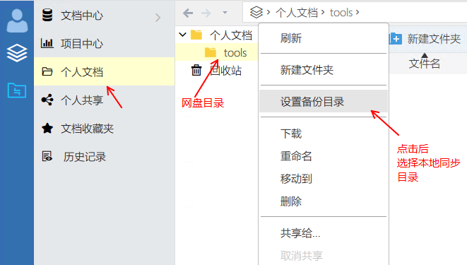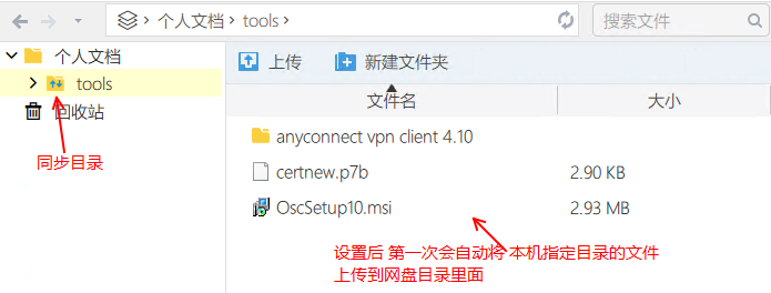 3)設置這個網(wǎng)盤目錄(tools)與本機電腦上指定目錄進行文件同步(本機如:c:\tools)