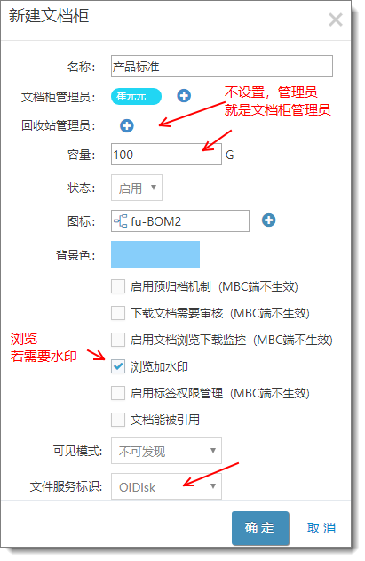 新增文檔柜 點(diǎn)擊后,需要注意的參數(shù)設(shè)置