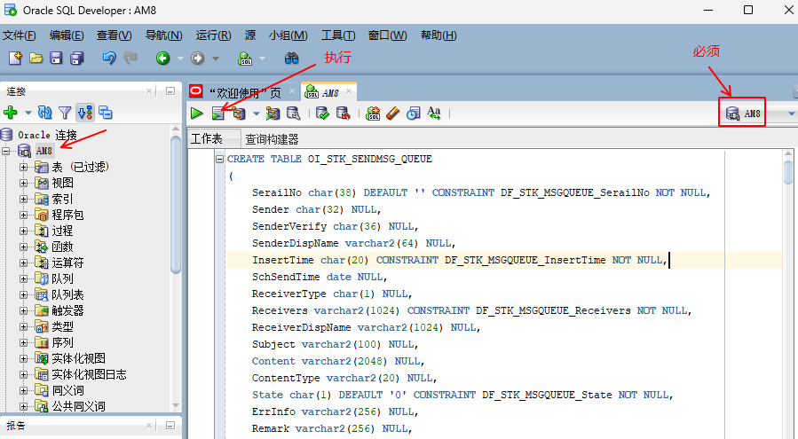 AM8數(shù)據(jù)庫(kù)創(chuàng)建成功后,按上述的方式 分別創(chuàng)建:OIOrg、OIFile、OIMobox