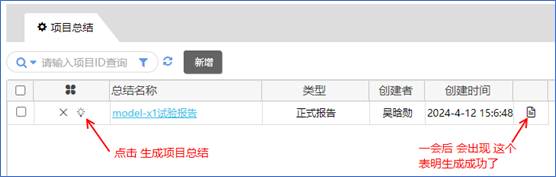 國家某試驗(yàn)中心,在試驗(yàn)項(xiàng)目完成后,進(jìn)入該項(xiàng)目,點(diǎn)擊“總結(jié)” ,進(jìn)行試驗(yàn)報(bào)告自動(dòng)生成。(實(shí)現(xiàn)檢測報(bào)告電子化)