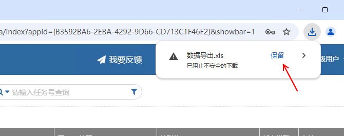 mobox3數據導出excel下載異常(google瀏覽器) 2024/08/31 分類:產品中心 產品手冊 問題中心 592 在google瀏覽器上mobox3導出數據下載excel的時候異常。 出現錯誤 解決方法 保留后,就能正常下載了(這個google新瀏覽器才會出現) 上一篇: 制造業低代碼平臺mobox3升級過程 下一篇: 事件日志查看的相關問題