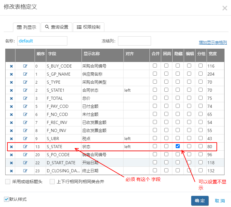 -》在grid列表定義里面 ,必須有 “S_STATE” 狀態? 這個字段