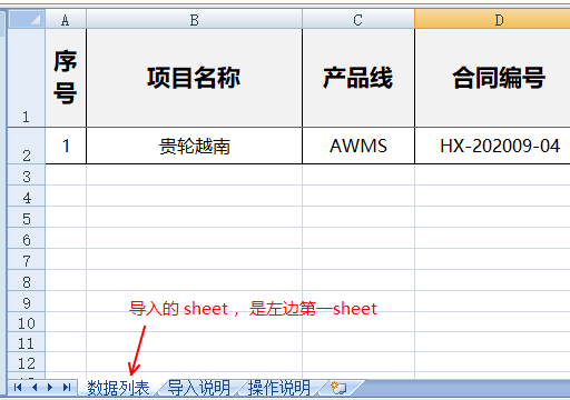 這個系統只能導入,左邊第一個sheet (命名無所謂)(注意:若數據列表 這個sheet左邊還有隱藏的sheet,那么系統也不能獲取 數據列表sheet頁的數據)