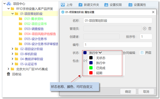 2)可以設(shè)置項(xiàng)目個節(jié)點(diǎn)完成狀態(tài)